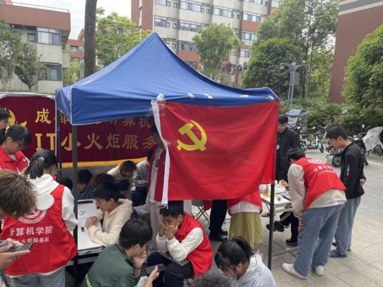 本次摆点相对于往期不同的是,自本期开始,IT小火炬党员服务队将积极响应一站式社区建设,改变以往在学院门口摆点的方式,下沉学生社区,让有需求的同学足不出“舍”,在宿舍楼下即可解决问题。在一年时间里,IT小火炬党员服务队将努力实现全校学生宿舍摆点全覆盖。
