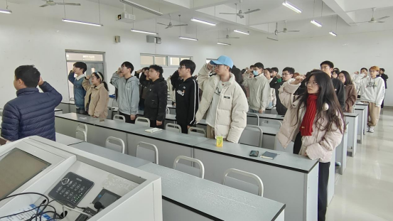 在重温入党誓词环节中,全体同志在饶涛老师的带领下一起面对党旗,向党旗郑重宣誓。宣誓完毕后,饶涛希望各位党员同志牢记入党初心,增强党性修养,勇担使命,坚定为共产主义奋斗终身的决心。