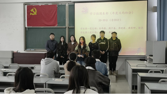 在学习强国表彰环节中,饶涛老师对各支部“学习强国”的学习情况进行点评,希望各位同志行稳致远,坚持学习,用好用活“学习强国”平台中的优质内容和资源,强化理论武装,锤炼过硬本领。
