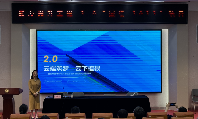 3月30日下午宜宾市青年街幼儿园刘巧莉以云端筑梦,云下植根未题进行了所属幼儿园信息技术融合案例分享,从组织与实施、成效与影响、融合以应用及分析反思等四方面就行了剖析。