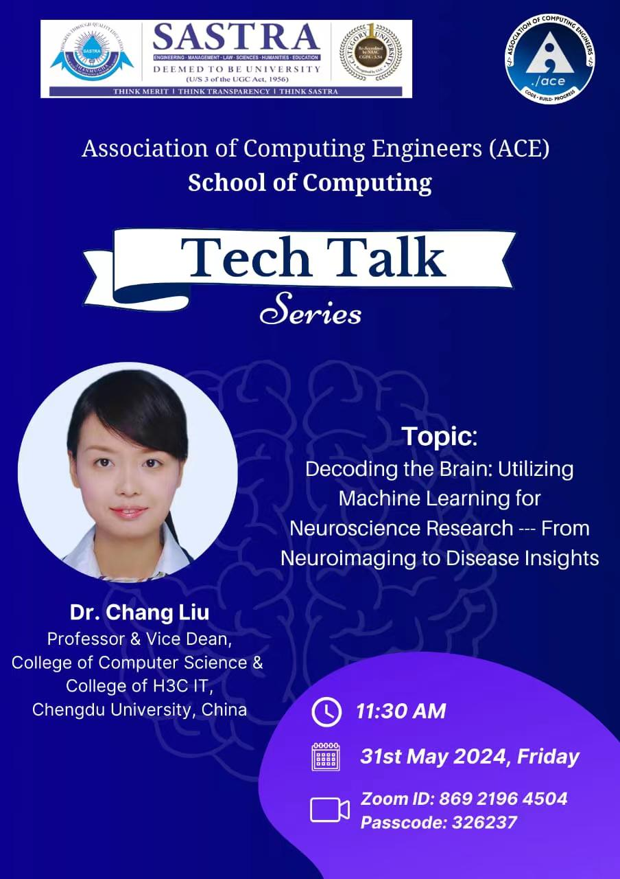 教师刘昶教授及吕晶晶副教授受SASTRA Deemed University邀请参加了一场科技讲座,刘昶教授分享了她关于“解码大脑:利用机器学习进行神经科学研究”的最新研究成果,吕晶晶副教授作了关于“基于特洛伊Y染色体(TYC)策略的生物入侵控制模型及其优化控制研究”的学术报告。