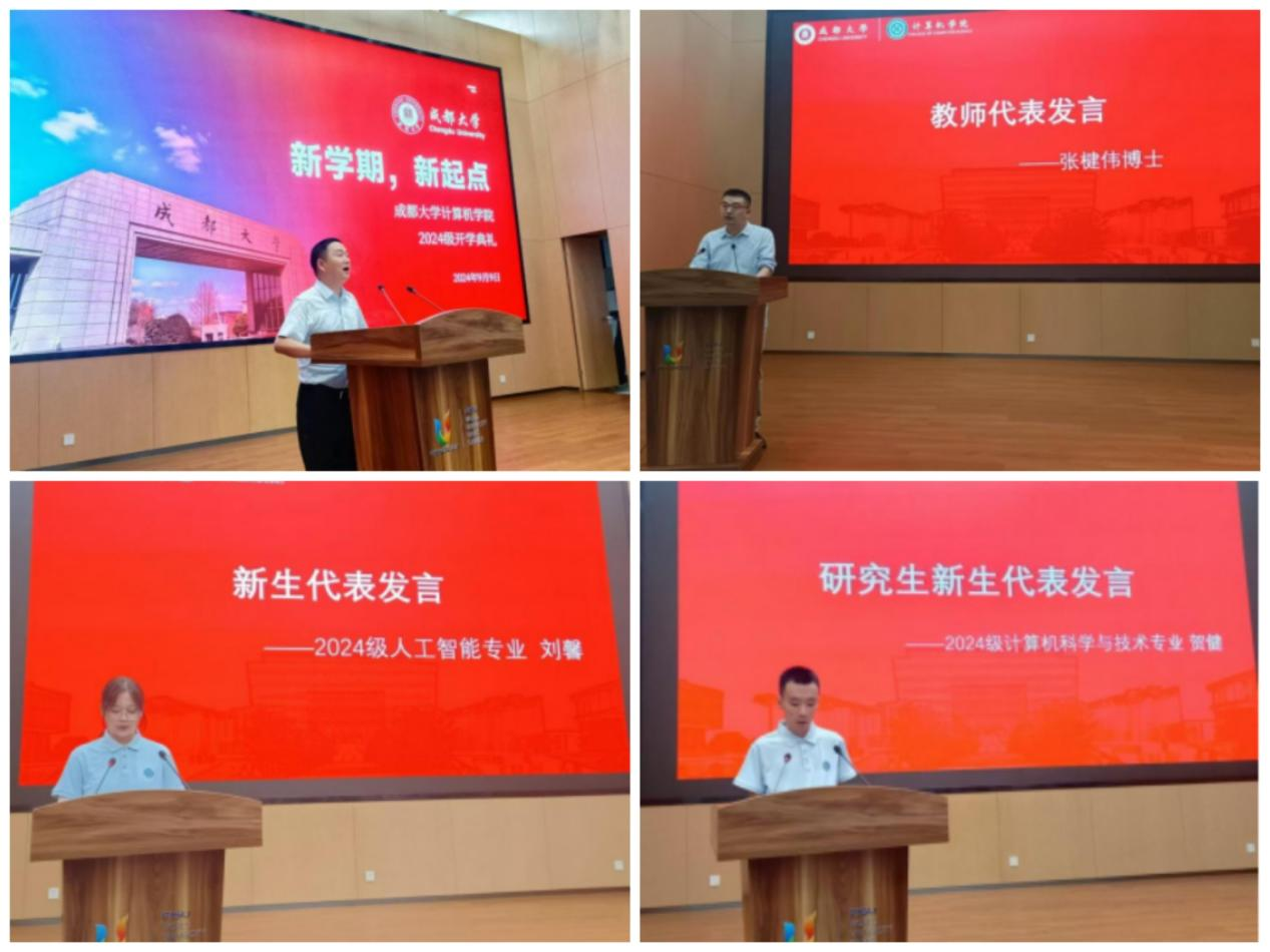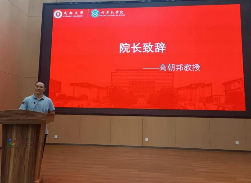 学院院长高朝邦致欢迎辞。他首先代表学院对2024级新生的到来表示热烈欢迎。高朝邦详细介绍了学院的发展历程、专业设置及师资力量。他强调大学阶段是人生关键期,并且鼓励新生立好志向、学好知识、过好生活,以行稳致远的态度走好青春路。学院致力于培养高素质计算机专业人才,拥有前沿专业课程和优秀师资团队,对新生寄予厚望。