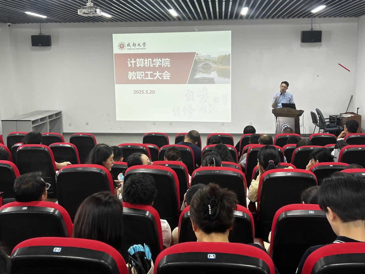 在10501会议室召开全体教职工大会。会议由学院党委书记肖小琼主持,全体教师出席并围绕近期规纪法学习要求进行学习,会议还就近期教学重点工作进行部署。