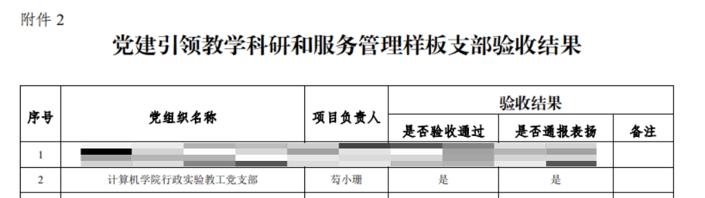 在党建引领、教学科研、服务管理等领域取得全面突破,党建引领发展示范学院、党建引领教学科研和服务管理样板支部、党员攻坚先锋队(志愿服务队)三个项目均获通报表扬。