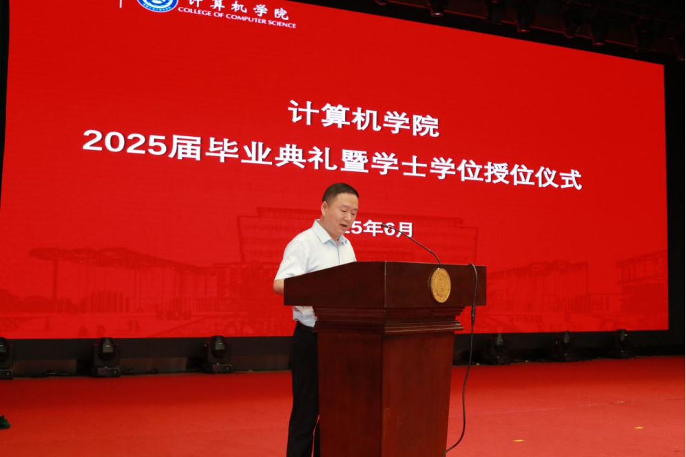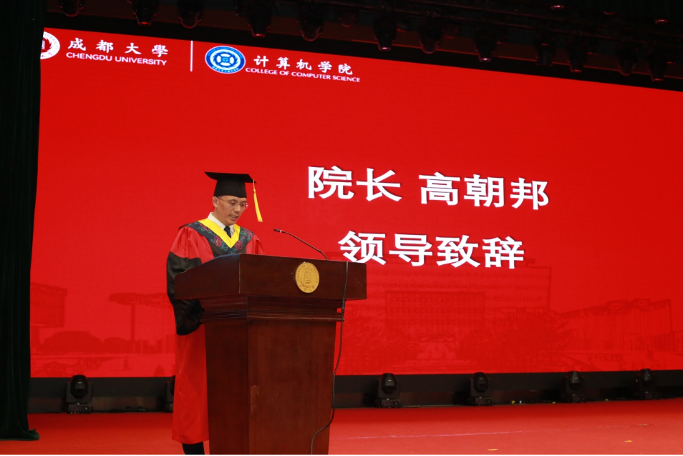 庄严的国歌声中,学院2025届本科生毕业典礼暨学士学位授予仪式正式拉开帷幕。学院院长高朝邦向全体毕业生表示热烈的祝贺,并向同学们提出了几点期望:一是笃学不辍,保持技术探索热忱,锤炼自我核心竞争力;二是笃行求实,注重实践淬炼,磨砺专业硬功;三是笃志创新,勇担科技自立使命,积极投身国家建设和社会发展;四是笃情思源,心系学院发展,用行业经验反哺学院学科建设。