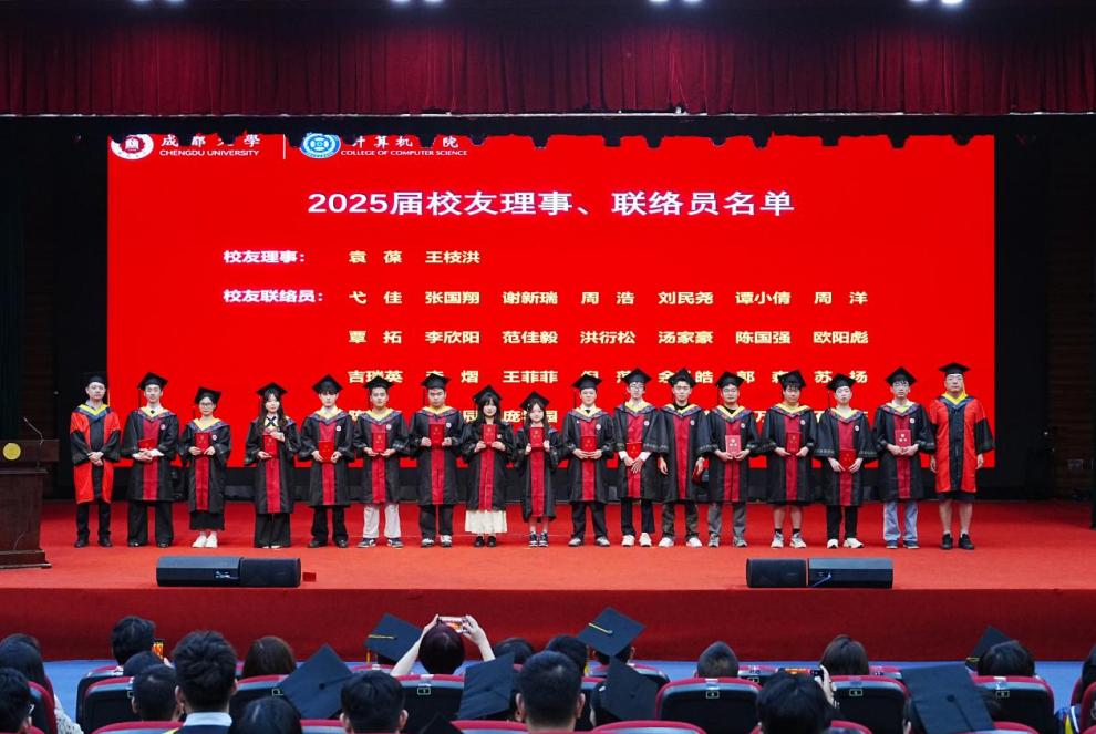 学院副院长古沐松、副院长王进为校友理事及校友联络员颁发聘书,寄予他们联络校友、助力学院发展的期望。随后,校友代表宋浩洁发表寄语,分享职场经历,鼓励学弟学妹永葆热忱,在科技领域勇闯前路,母校永远是坚强后盾。