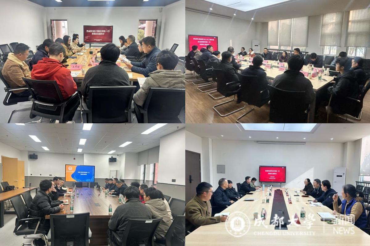 领导班子及骨干教师先后走访了文学与新闻传播学院、临床医学院、建筑与土木工程学院、应急管理学院、斯特灵学院等校内兄弟单位,围绕人工智能交叉学科建设、教学管理优化、师资队伍培养、学术科研协作等关键议题展开深入研讨,多领域达成初步合作意向。