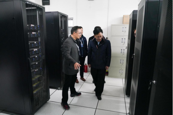 院班子的陪同下参观了学院一楼办公区,查看了学院风貌整治提升项目建设效果;参观了三楼实验技术中心机房和实验室,对学院实验室建设现状进行了实地了解。随后走访参观了五楼成龙谷B区,深入师生科创团队、走访了解了入驻企业并听取了企业负责人的介绍。