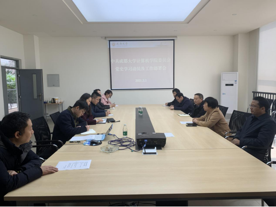 党委在10106会议室召开了党史学习教育动员暨工作部署会。学院班子成员全员出席会议,教师党支部支委及学生党支部书记参会,学院党委书记肖小琼主持会议。