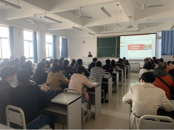 在10201召开了全体教职工大会。学院党委书记肖小琼主持会议,全体教职工参会。