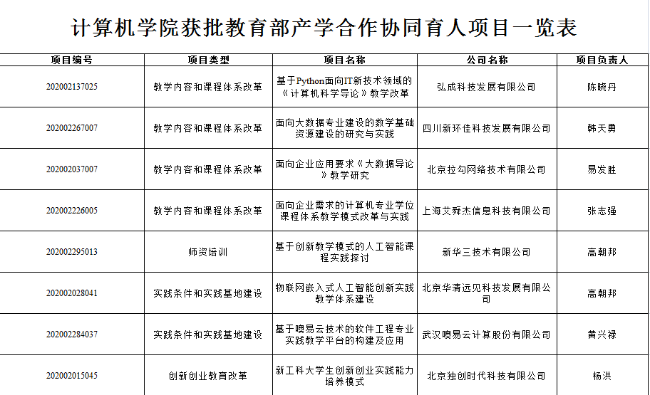 “四新”建设、教学内容和课程体系改革、实践条件和实践基地建设、师资培训、创新创业改革等方面起到引领和示范作用。学院将进一步加强对项目的指导和管理,督促项目负责人与相关企业加强联系,按照要求高质高效推进项目实施,进一步完善产教融合、校企合作协同育人机制,不断提高人才培养质量。