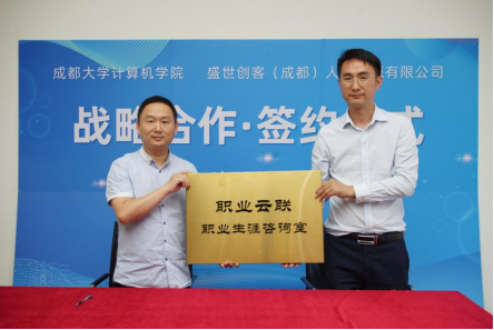 与职业云联举行战略合作签约仪式,双方就共建职业生涯咨询室达成深度战略合作。学院党委副书记孟源、学工办老师、职业云联首席市场官季朝平及公司代表出席了本次签约仪式。