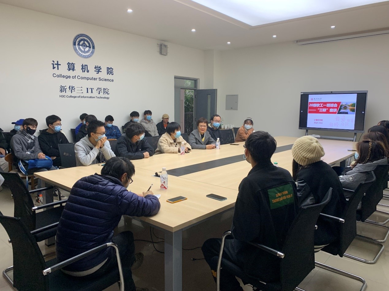 本网消息(图/文 洪雪维 罗咏劼)12月6日中午2020级软工1班在10106会议室召开了抗疫主题班会,邀请了联系指导班级的学校党委常委、宣传部部长陈钧出席指导。