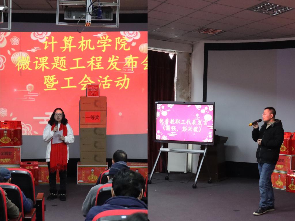 在活动中,对学院推荐评为学校优秀教职工的15名教职工及11名学院优秀教职工进行表彰,优秀教职工代表蒲强老师、彭兴媛老师上台发言,分享了自己执教生涯的成长经历与广大教职工共勉。