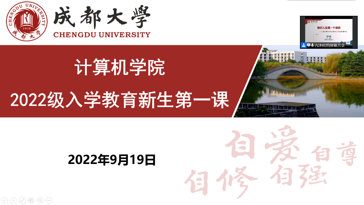 新生第一课拉开了学院2022级入学教育的帷幕,接下来一周,学院将围绕学生资助、国际交流、专业认知、学业生涯、教学系统等方面作专题线上教育,并在学生返校后,以线下形式,继续做好各项专题教育,以帮助2022级新生尽快熟悉学校、学院、专业,尽早适应融入大学学习生活。