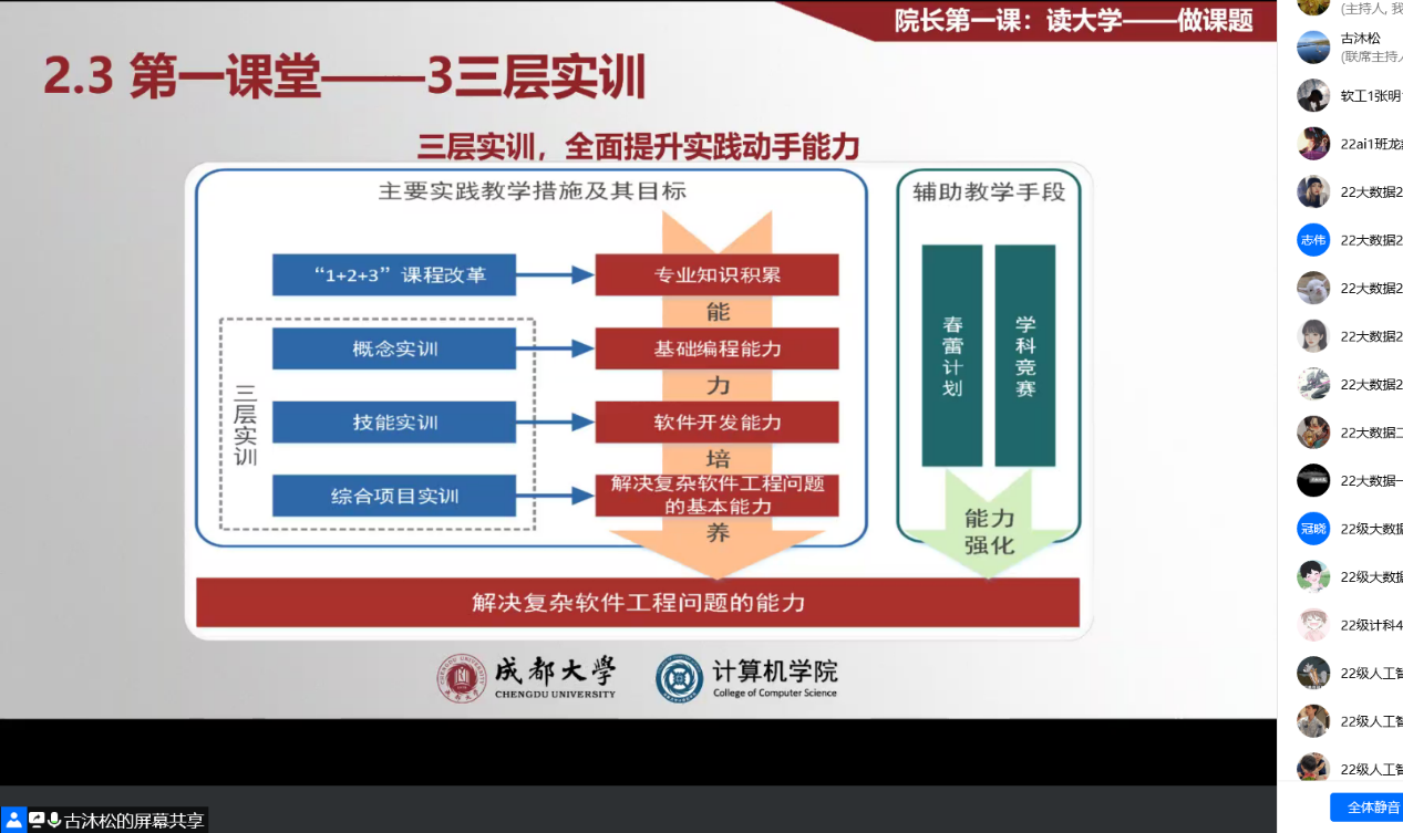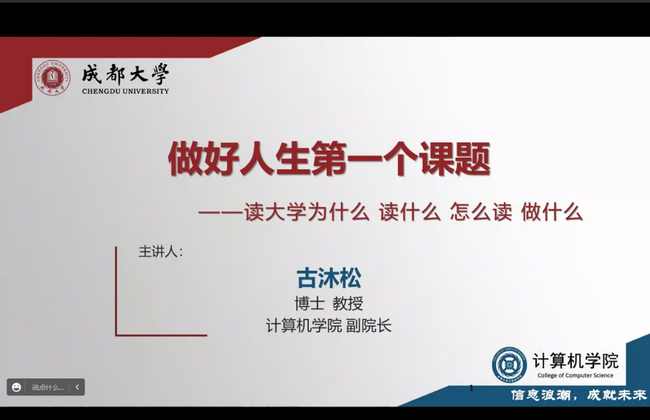 2022级入学教育新生第一课在腾讯会议举行。学院副院长古沐松教授作“做好人生第一个课题”主题讲授,来自全国各地的420名2022级新生在线聆听。会议由辅导员饶涛主持。