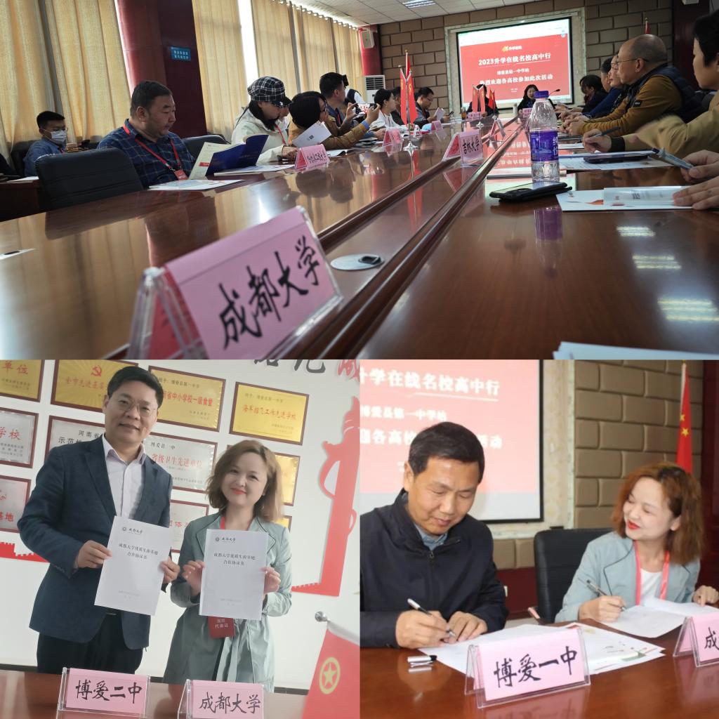 随后,我校与博爱一中、博爱二中签署优质生源基地协议。协议的签署意味着我校将与各高中共同为学生搭建更好地发展平台,吸引更多的河南优质生源。