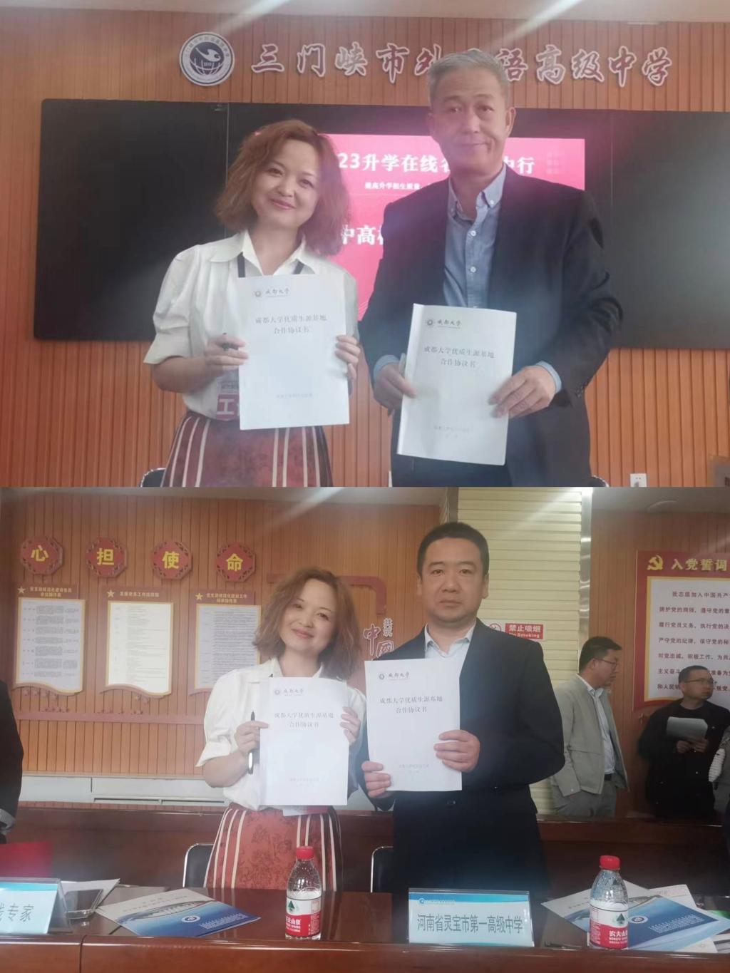 座谈会上,校长严万云首先表示欢迎并介绍了三门峡市的悠久历史和灿烂文化,以及外高在张启勋校长的带领下二次创业取得的成就。党委书记、校长张启勋介绍了外高的办学历史和办学成绩,并就大学先修课、尖子生培养等问题与高校代表团进行了深入探讨。座谈会结束后,座谈结束后,我校与三门峡市外国语高级中学、灵宝市第一高级中学签署优质生源基地协议,希望今后在学生能力培养、职业发展规划领域、特别是足球运动方面进行更深入的合作。