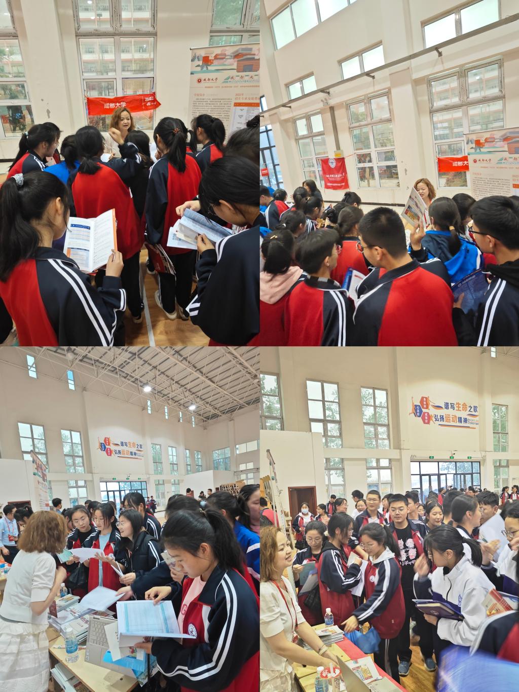 在接下来的咨询现场,招生宣传小组为学生与家长发放学校招生简章,现场解答与招生相关问题。