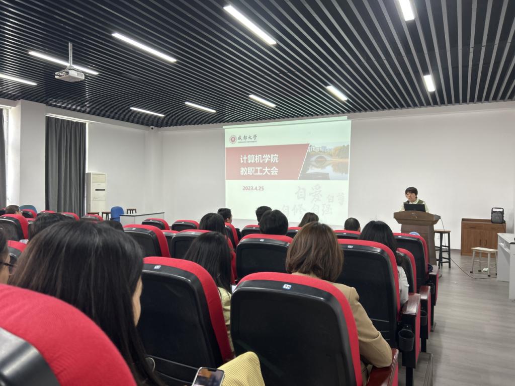 本网消息(图/文 洪雪维)4月25日中午,学院在10501会议室召开了教职工大会,学院全体教职工到会领导班子成员到会并做近期工作安排部署,学院党委书记肖小琼主持会议并组织全员教职工进行政治理论学习。