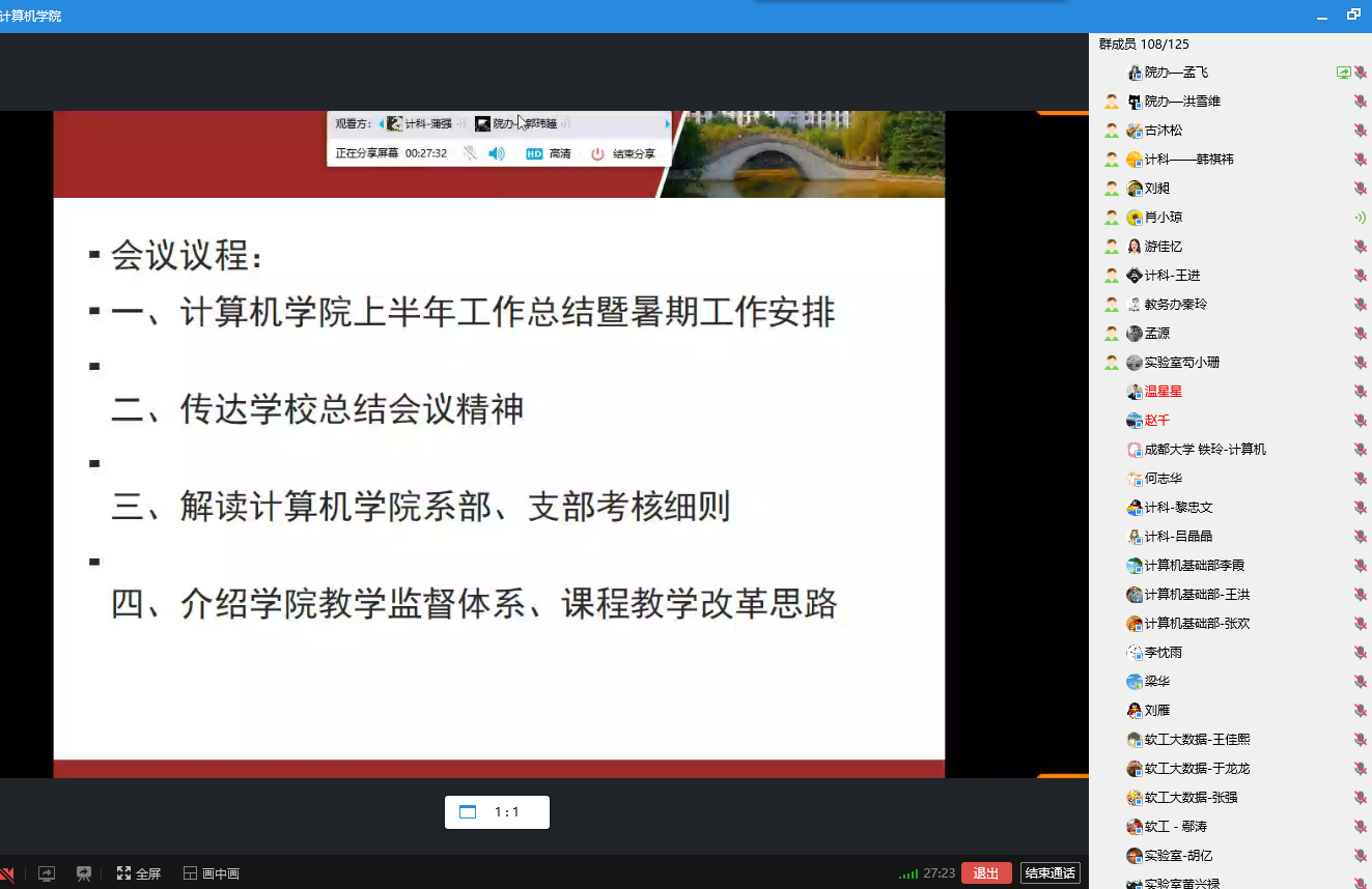 在线上召开了全院教职工大会,领导班子全员出席会议,全体教职工参会,会议由党委书记肖小琼主持。