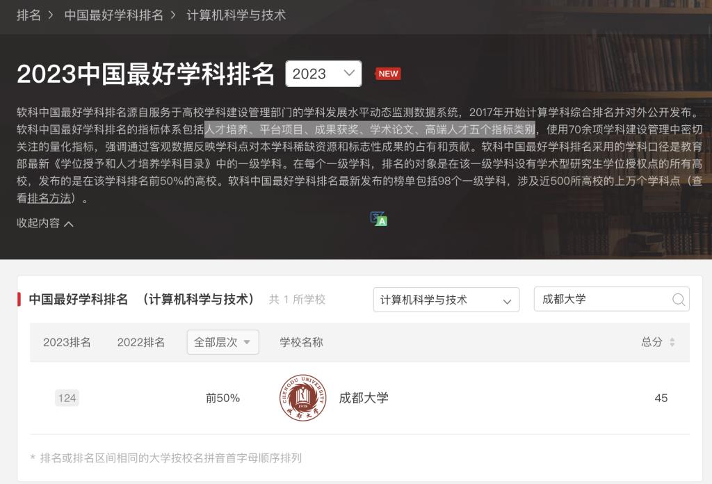 计算机科学与技术学科首次入围,排名全国124位。计算机科学与技术学科榜单上,四川省共计5所高校上榜,做爱视频