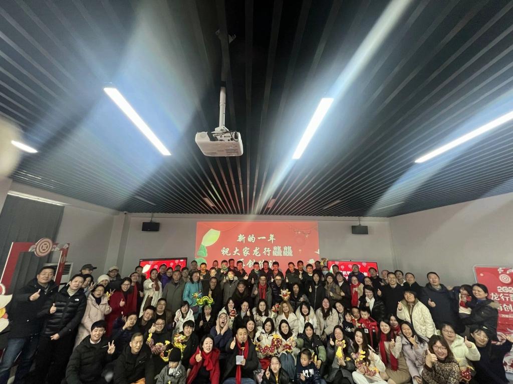 全体教师在10501会议室举办了以“龙行龘龘,再创佳计”为主题的总结大会暨工会年会,全院教职工齐聚一堂,共飨盛典。