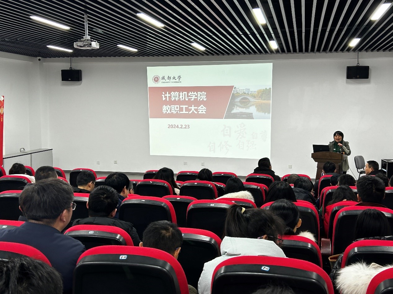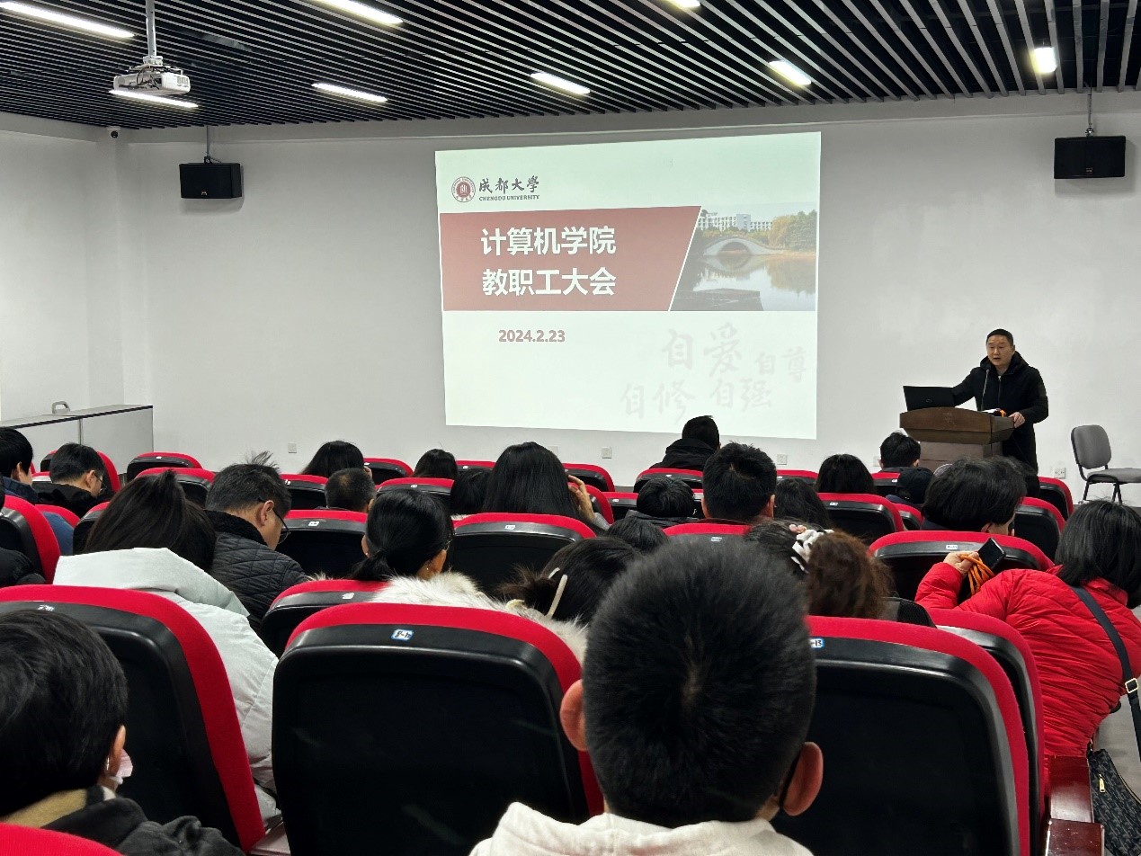 会上学院党委书记肖小琼传达了学校上半年工作会会议精神,传达了校党委书记刘强在会上讲话的精神也传达了校长王清远关于2024年重点任务的安排部署,肖小琼指出2024年是中华人民共和国成立75周年,是学校实施“十四五”规划的关键之年,是申博攻坚冲刺之年,是数字化战略开启之年,是本科教学审核评估之年,肖书记向学院教师提出要求,配合学校各部门全年重点要抓好1+5项工作,发挥学院在数字化方面的专长,助力实施数字化战略,持续赋能高质量发展。