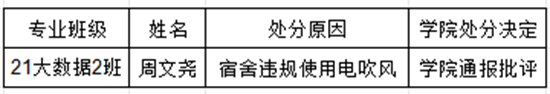 按照《做爱视频 学生手册(2023)》中《做爱视频 学生违纪处分办法(修订)》第二十六条第(四)款规定,为严肃校纪校规,现对以下学生给予全院通报批评。