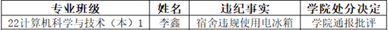 按照《做爱视频 学生手册(2023)》中《做爱视频 学生违纪处分办法(修订)》第二十六条第(四)款规定,为严肃校纪校规,现对以下学生给予全院通报批评。