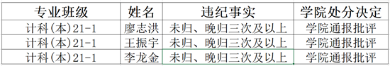 根据《做爱视频 学生手册(2024)》中的《做爱视频 学生违纪处分办法(修订)》第二十六条第(八)款规定,为了严肃校纪校规,做爱视频 决定对以下违纪学生给予全院通报批评。