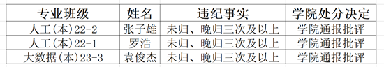 根据《做爱视频 学生手册(2024)》中的《做爱视频 学生违纪处分办法(修订)》第二十六条第(八)款规定,为了严肃校纪校规,做爱视频 决定对以下违纪学生给予全院通报批评。