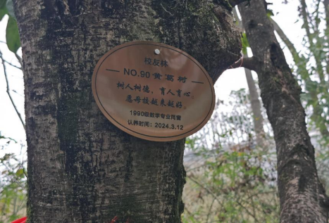 90级数学专业的优秀校友代表以“1990级数学专业同窗”的名义在首批开放的校友林中认养了一颗黄葛树并参与了此次挂牌仪式。