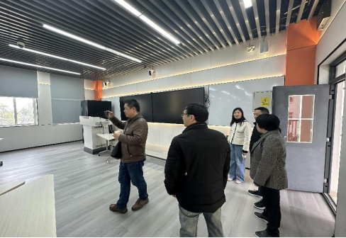随后,90级优秀校友代表也在学院党委书记肖小琼、党委副书记孟源以及学院数学基础部杨洪老师的陪同下,对学院进行了参观。从宽敞明亮的教室到设备完善的现代化实验室,肖书记和杨洪老师都细致入微地为校友们做了详细的解说。